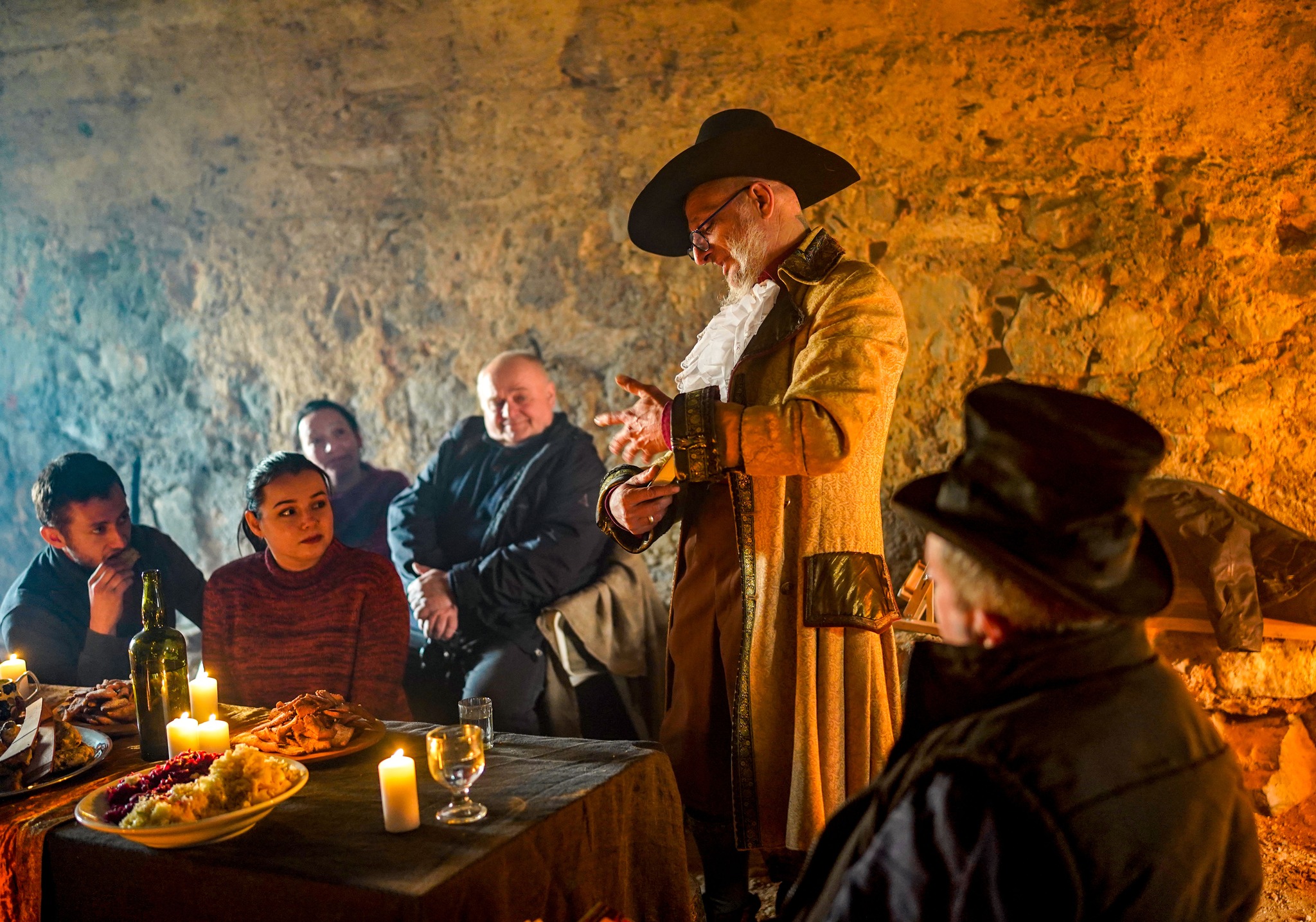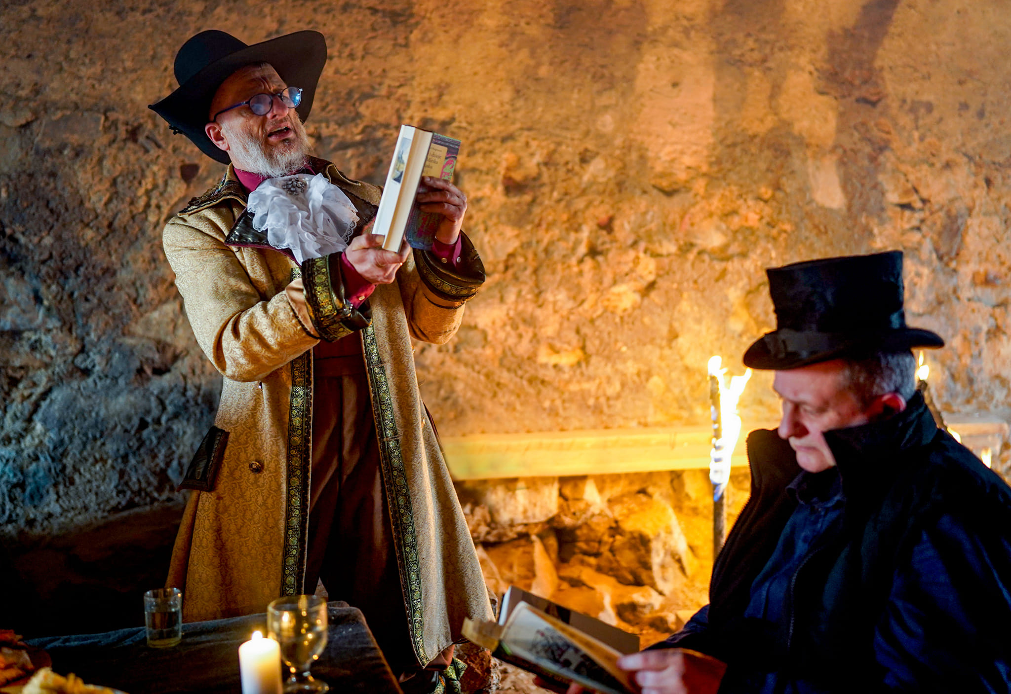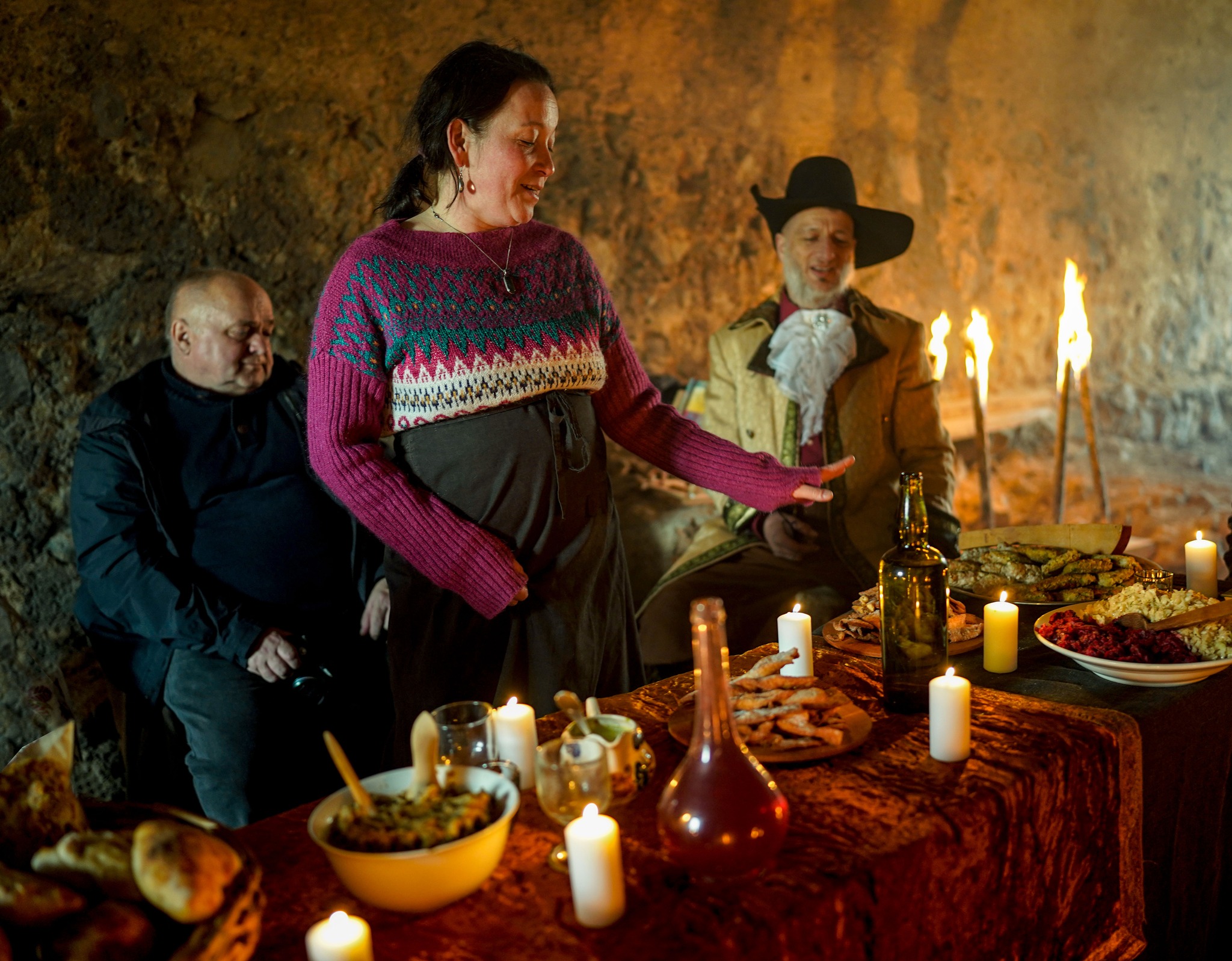 O samym autorze kroniki opowiedzia dr Łukasz Tekiela z Muzeum Regionalnego w Lubaniu. Prezentacji książki dokonał pan Marcin Wawrzyńczak z Wydawnictwa Wielka Izera. Przy stole, w zamkowej komnacie przy zapalonych pochodniach fragmenty kroniki związane z zamkiem Gryf i historią Mirska odczytał znany aktor teatralny pan Mirosław Zbonik. Trzeba też wspomnieć o oprawie muzycznej tego wydarzenia. Niesamowity dźwięk liry korbowej, a właściwie klimatyczna gra pana Przemysława Kwiatkowskiego dopełniły ten unikalny, czarodziejski wieczór. Johann Gottfried Bergemann był też autorem książki kulinarnej, nic więc dziwnego że na stole z poczęstunkiem znalazły się potrawy, które gotowano 200 lat temu. Rekonstrukcji tych potraw dokonały złote ręce pani Zofii Jazygow (Nagórze 24 - szkółka na zakwasie).
