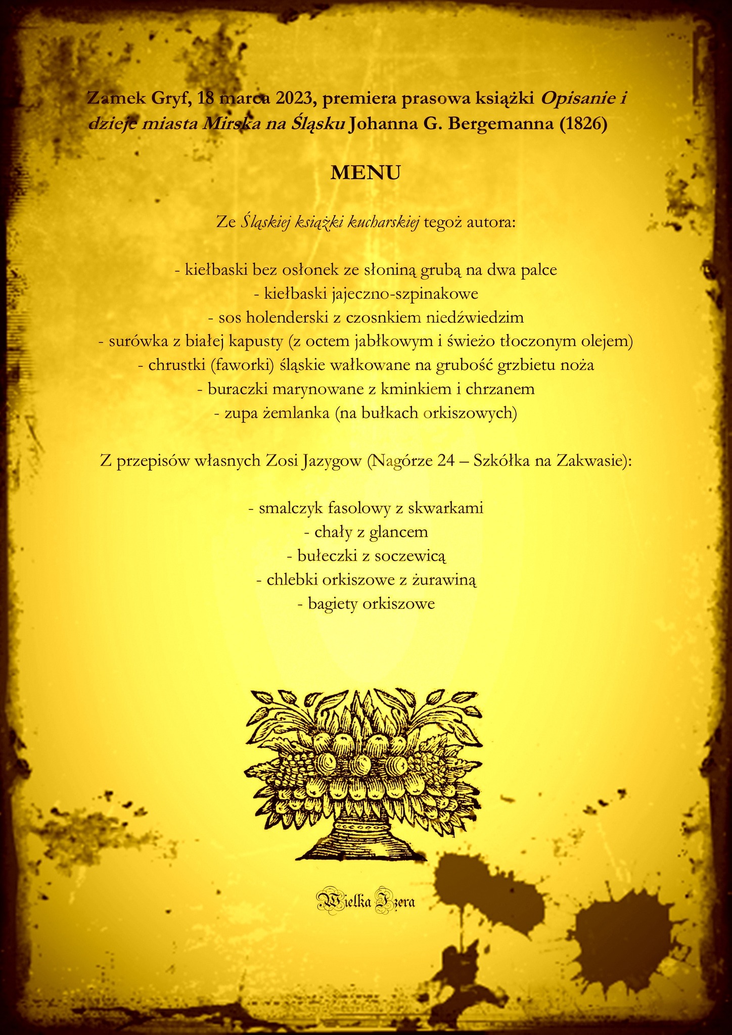 Wszystko to za sprawą Wydawnictwa Wielka Izera, Zamku Gryf i Muzeum Regionalnego w Lubaniu, którzy w ten sposób wprowadzili nas w premierę prasową książki „Opisanie i dzieje miasta Mirska na Śląsku - część I”. Jest to pierwsze polskie wydanie. Autorem kroniki jest Johann Gottfried Bergemann (1783–1837).