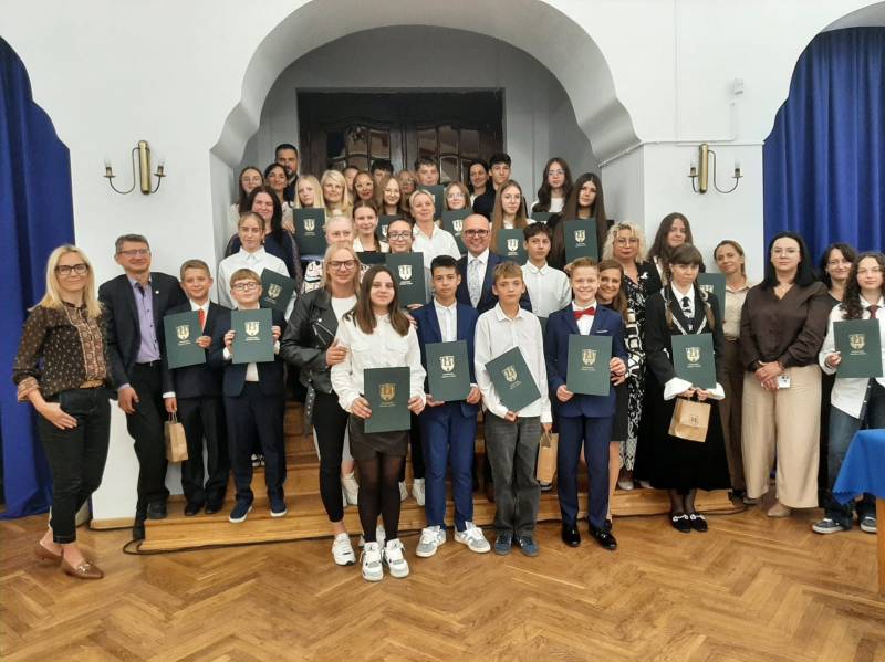 23 września, w Sali Lustrzanej tutejszego MDK, uczniowie lubańskiej Jedynki wraz z rodzicami uczestniczyli w uroczystości wręczenia stypendiów oraz nagród Burmistrza Miasta Lubań. Wyróżnienia te są przyznawane uczniom klas 4-8 szkół podstawowych za wybitne wyniki w nauce i sukcesy w konkursach powiatowych (klasy 4-6) i co najmniej wojewódzkich (klasy 7-8), a także szczególne osiągnięcia sportowe i artystyczne na szczeblu wojewódzkim i wyższym w roku szkolnym 2024/2025 w ramach „Lokalnego programu wspierania edukacji uzdolnionych dzieci i młodzieży szkół podstawowych z terenu Gminy Miejskiej Lubań”.