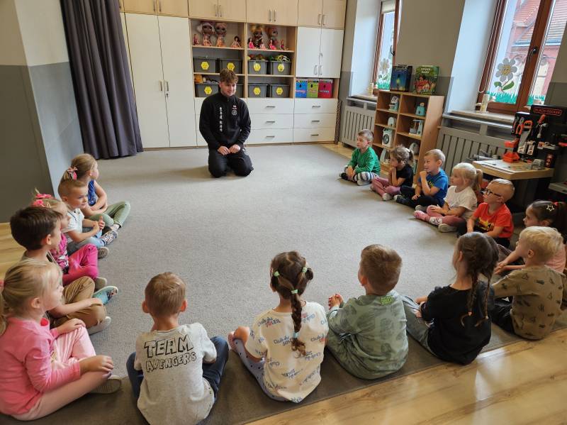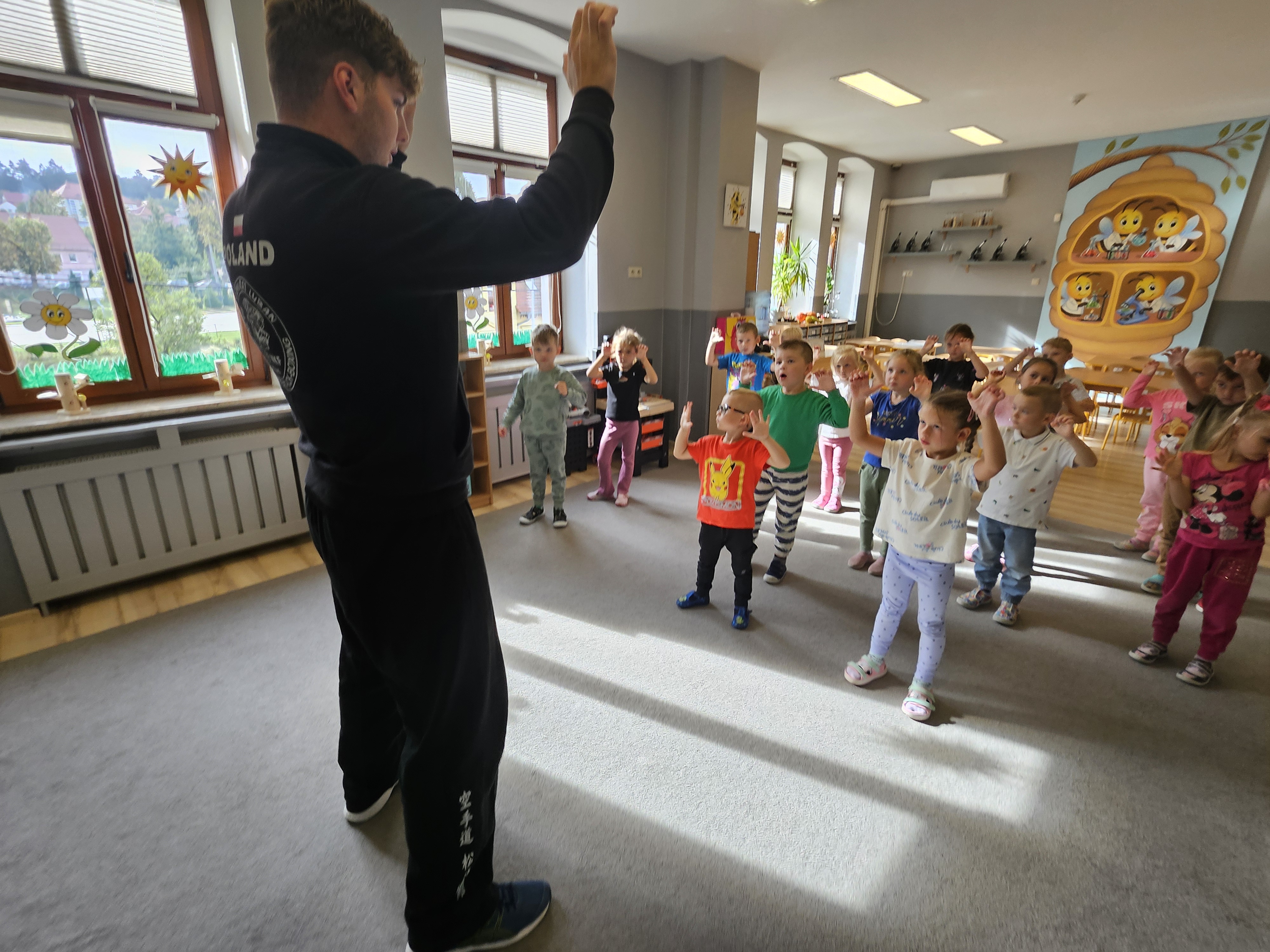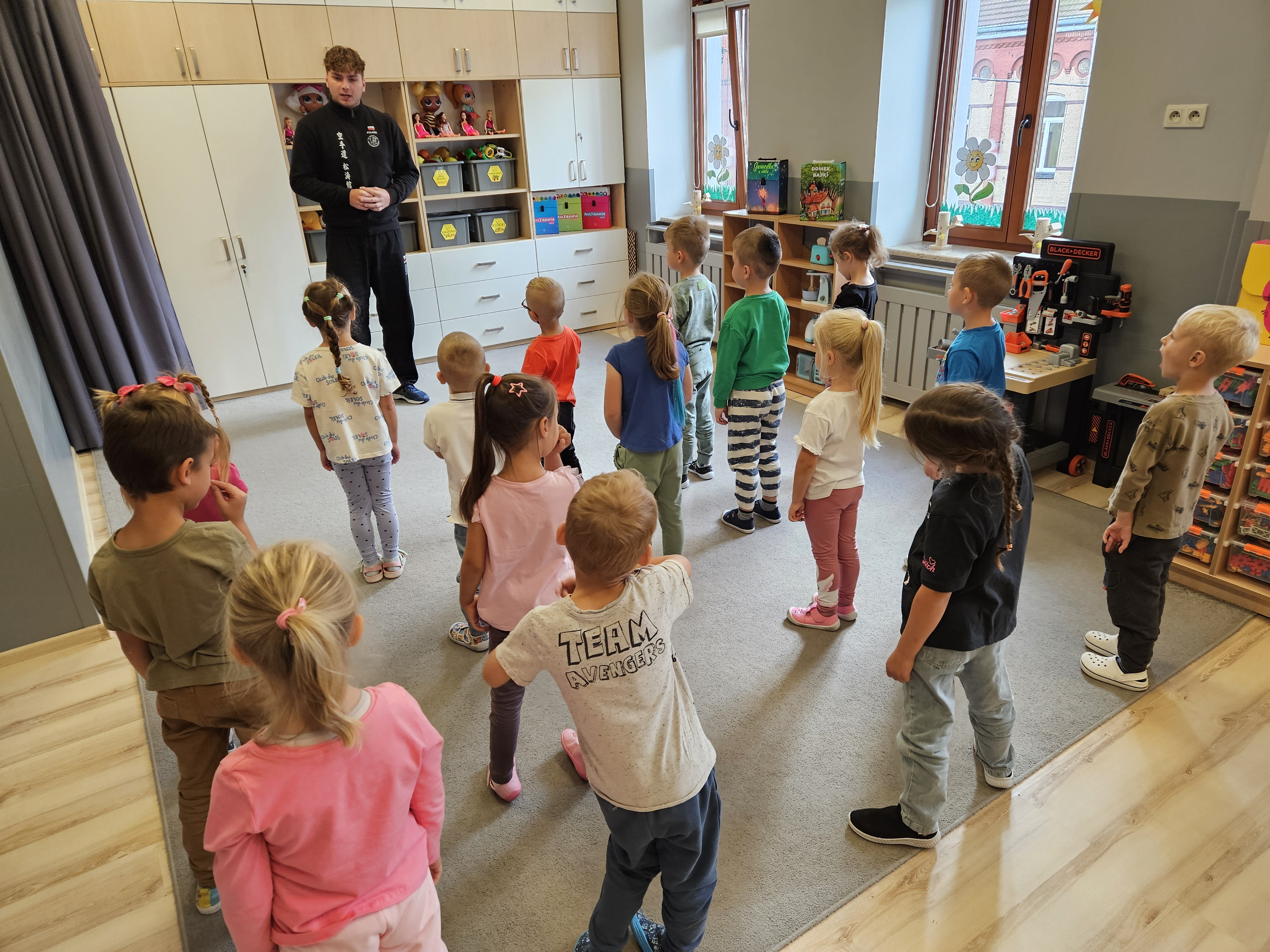 Aktywne Pszczółki na zajęciach z samoobrony z Trenerem Jakubem Jaworskim.