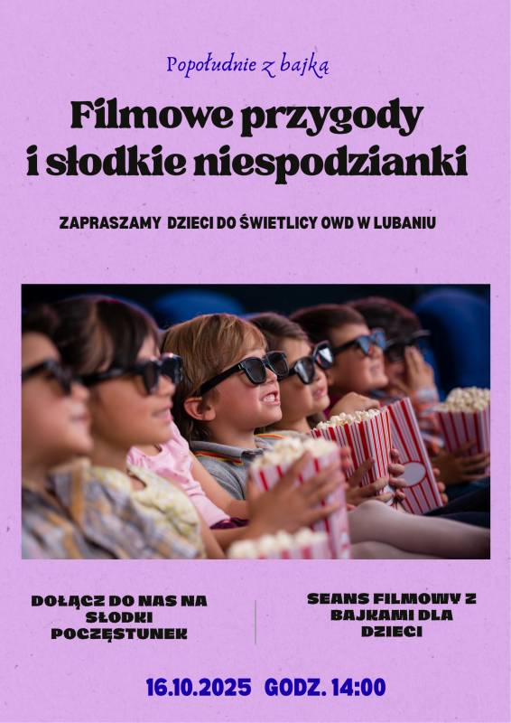 Czeka na was seans filmowy, słodki poczęstunek, dużo śmiechu i zabawy