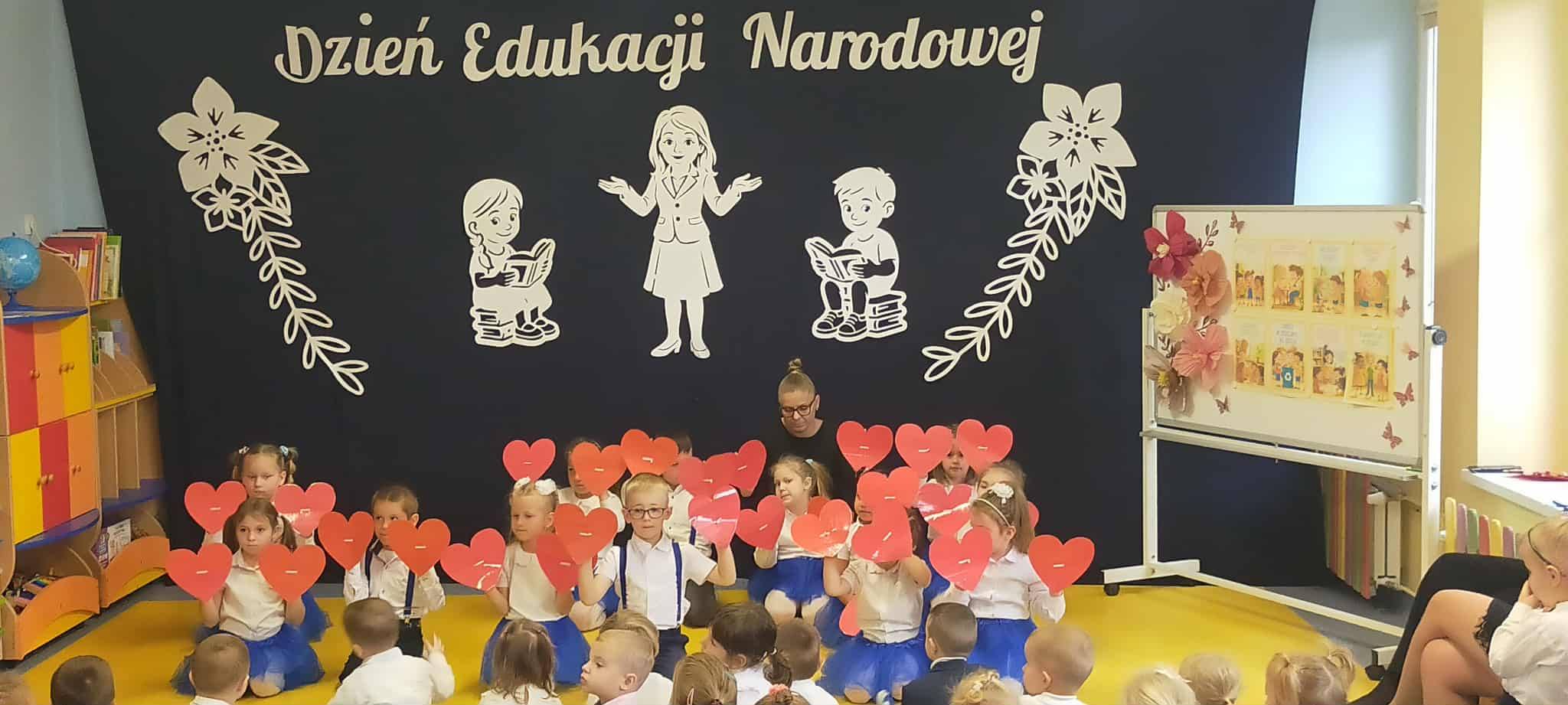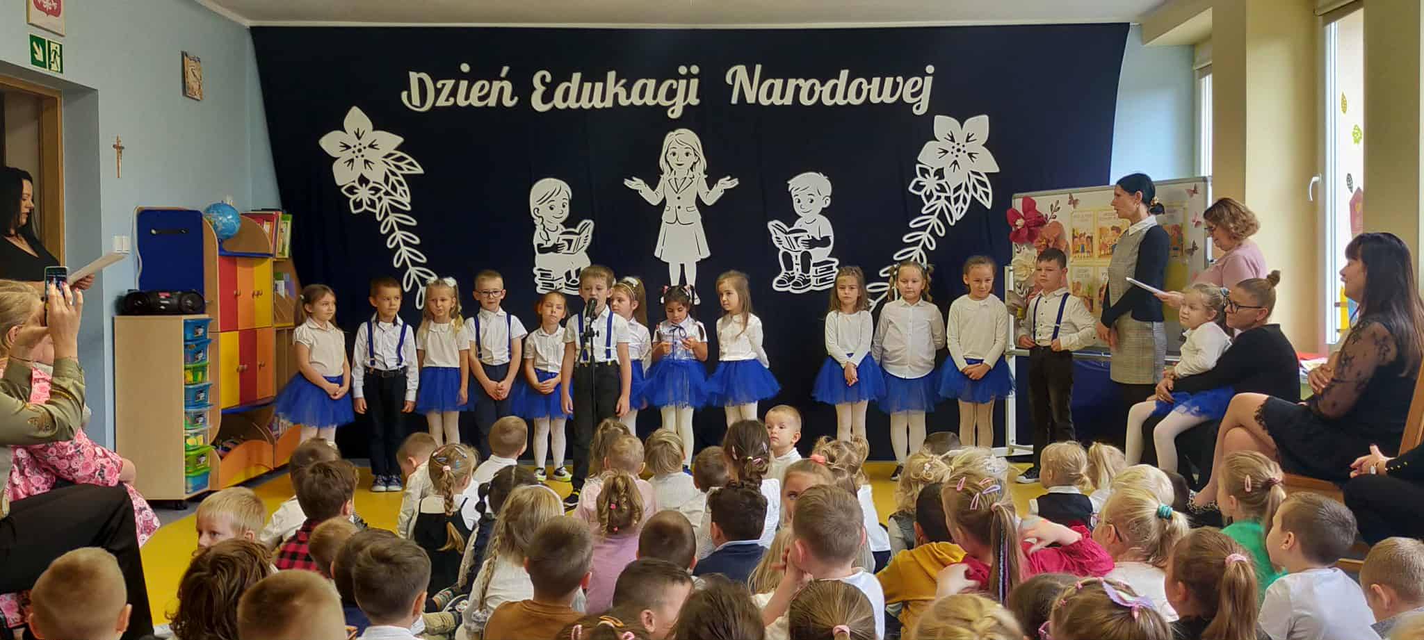 Dzień Edukacji Narodowej to niezwykle ważne święto dla całej społeczności przedszkolnej. Zarówno dzieci, jak i nauczyciele, pracownicy administracji i obsługi przyszli w tym dniu odświętnie ubrani, by wspólnie spotkać się na akademii, wysłuchać wierszy i piosenek w wykonaniu grupy integracyjnej. W ten sposób dzieci chciały podziękować swoim nauczycielom oraz wszystkim pracownikom przedszkola za troskę i serce, które Ci wkładają w nauczanie i wychowanie najmłodszego pokolenia. Akademia z okazji DEN była też okazją do wręczenia przez panią dyrektor Katarzynę Śpiewak podziękowań i nagród nauczycielom i pracownikom obsługi i administracji.