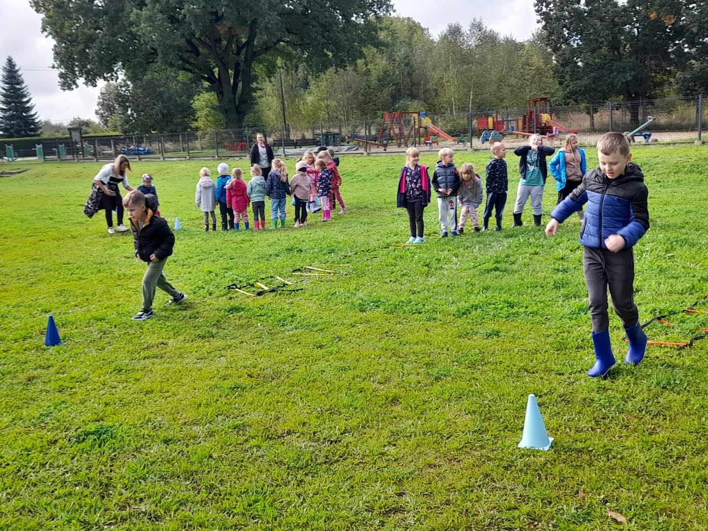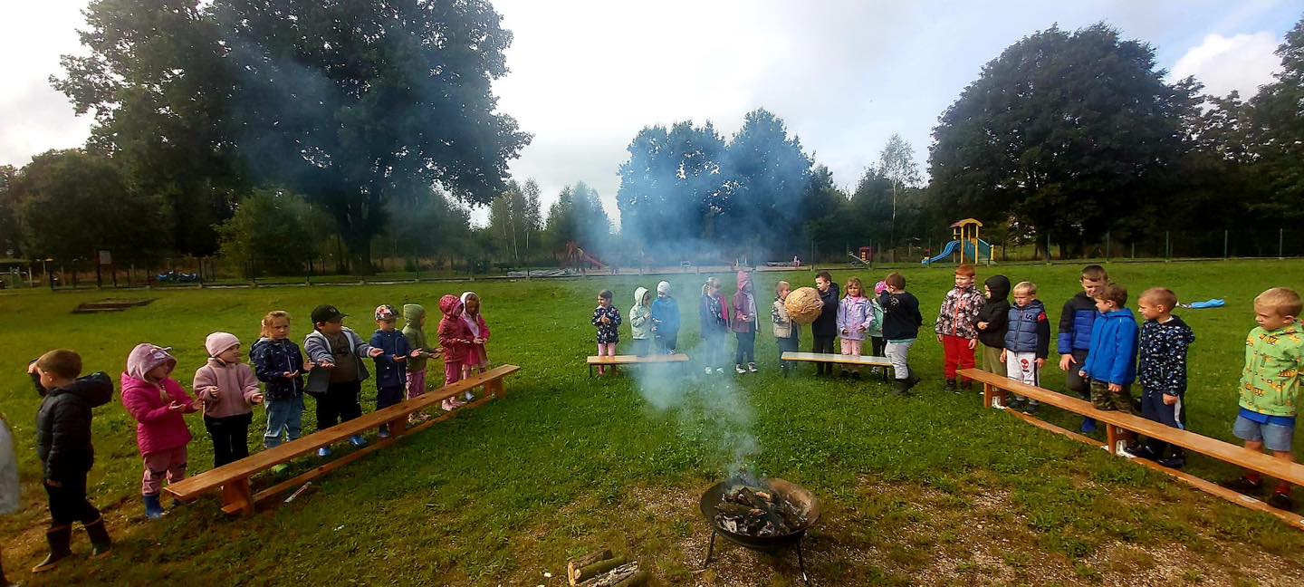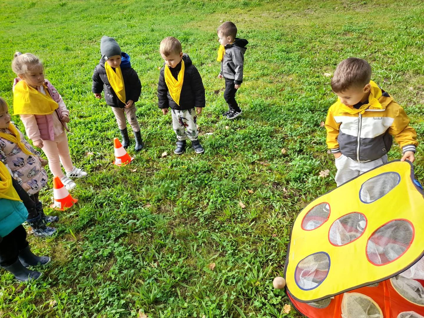Nie zabrakło torów przeszkód, z którymi nawet maluszki świetnie sobie poradziły. Były zabawy muzyczne przy ognisku, a na koniec zjedliśmy pyszne ziemniaczki z ogniska.