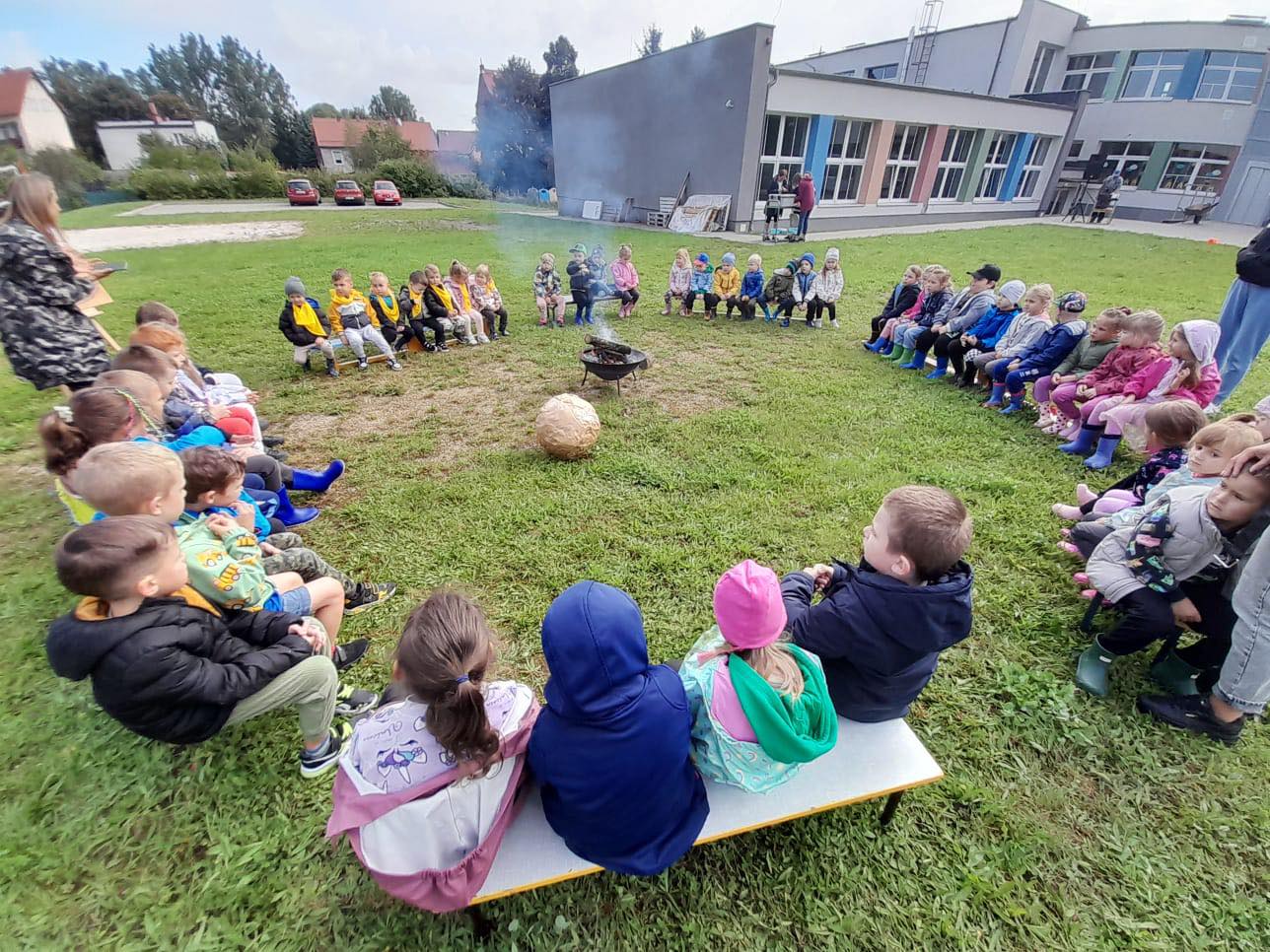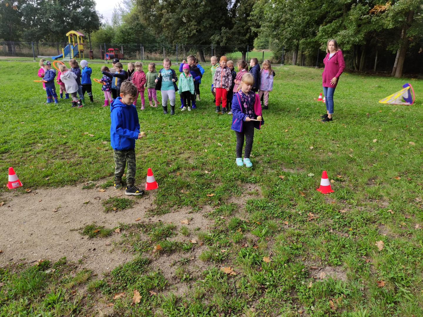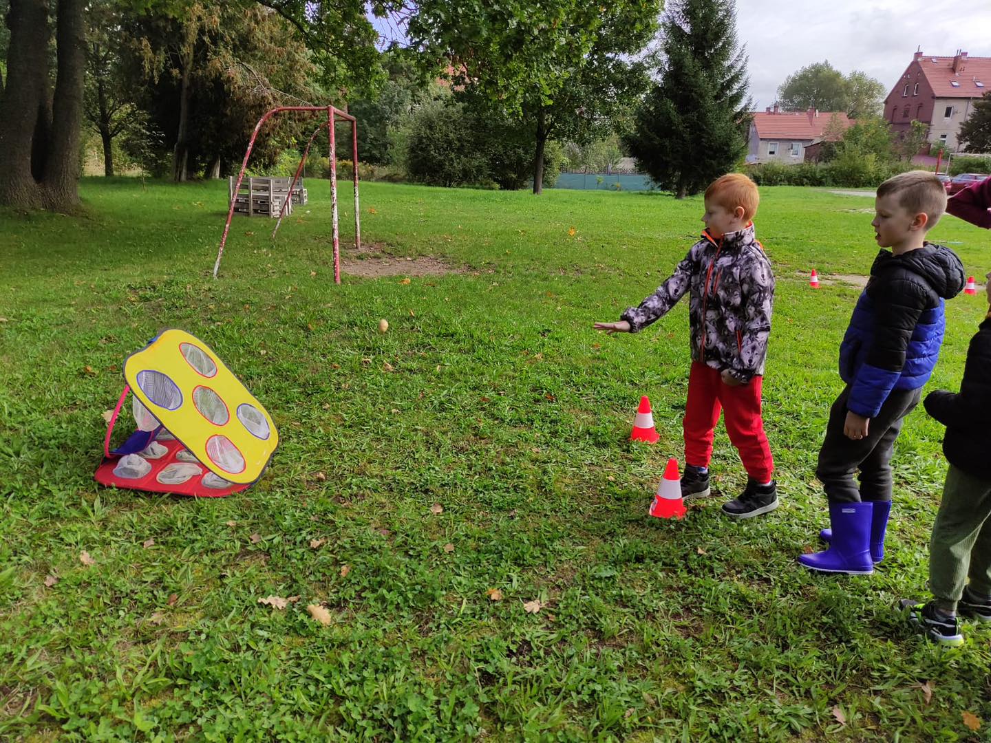 Nie zabrakło torów przeszkód, z którymi nawet maluszki świetnie sobie poradziły. Były zabawy muzyczne przy ognisku, a na koniec zjedliśmy pyszne ziemniaczki z ogniska.