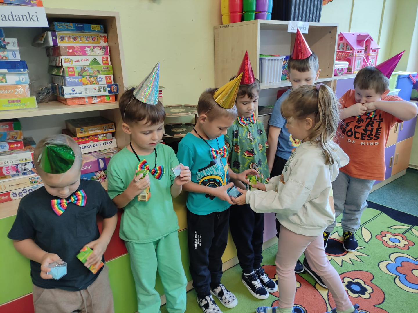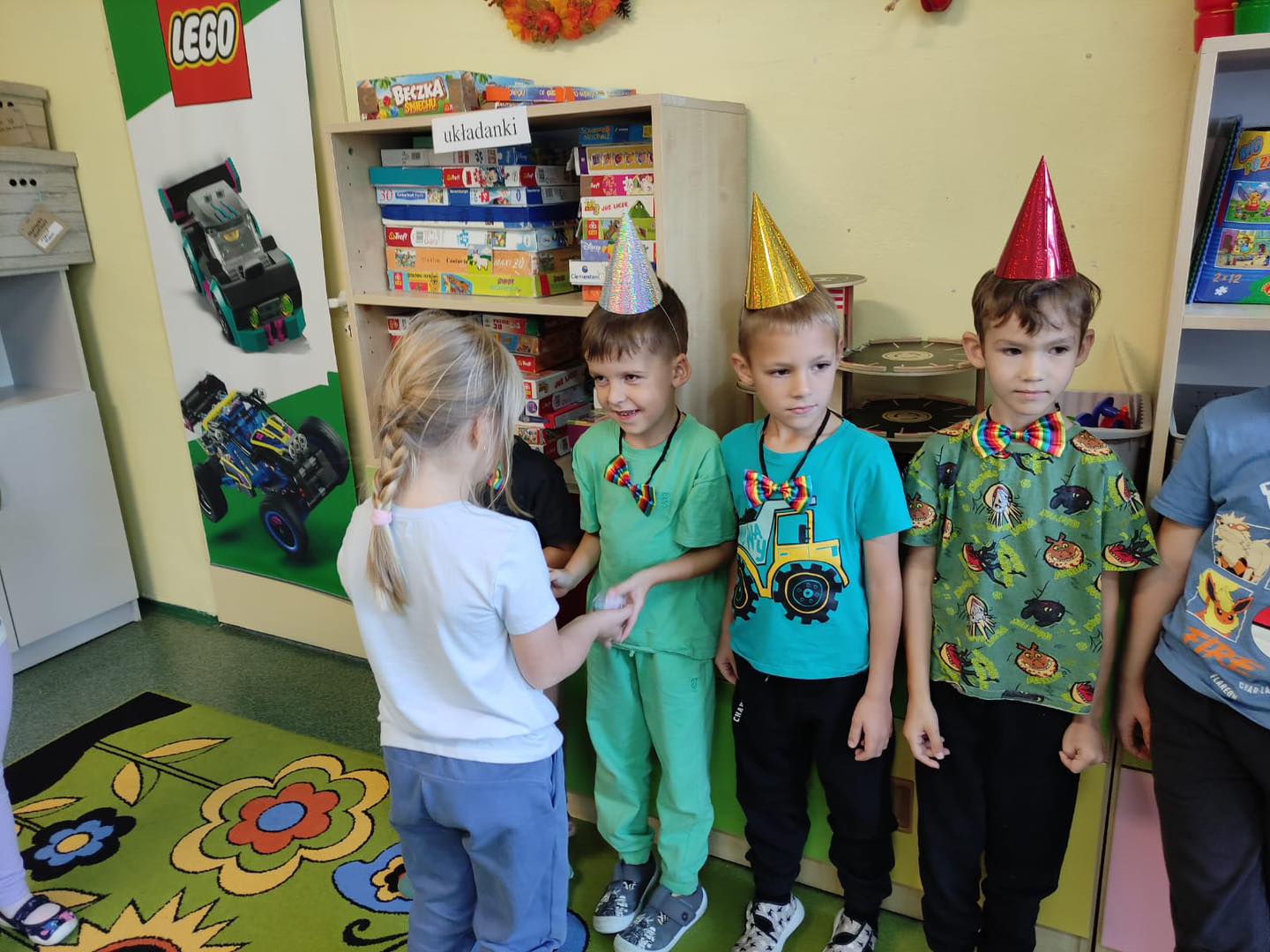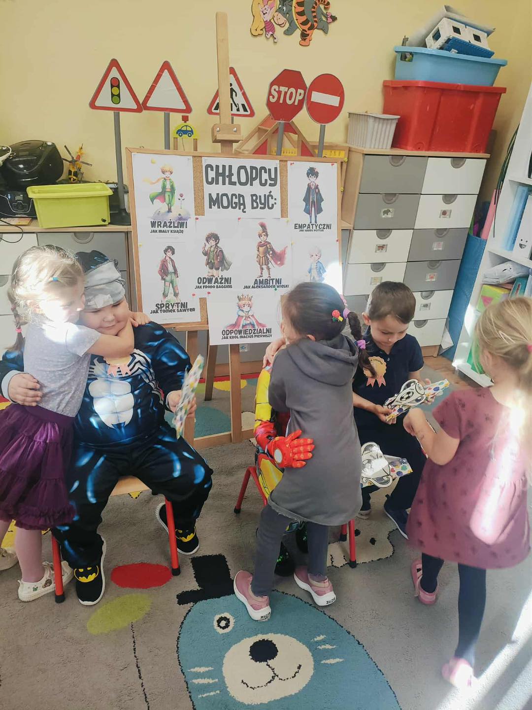 Dzień chłopaka w naszym przedszkolu na sportowo, śpiewająco, tanecznie i bohatersko. W tym dniu we wszystkich grupach dziewczynki wręczały chłopcom upominki, własnoręcznie namalowane laurki, złożyły życzenia, uściskały i ucałowały. Nie brakło także w tym dniu słodkiego poczęstunku dla wszystkich dzieci.