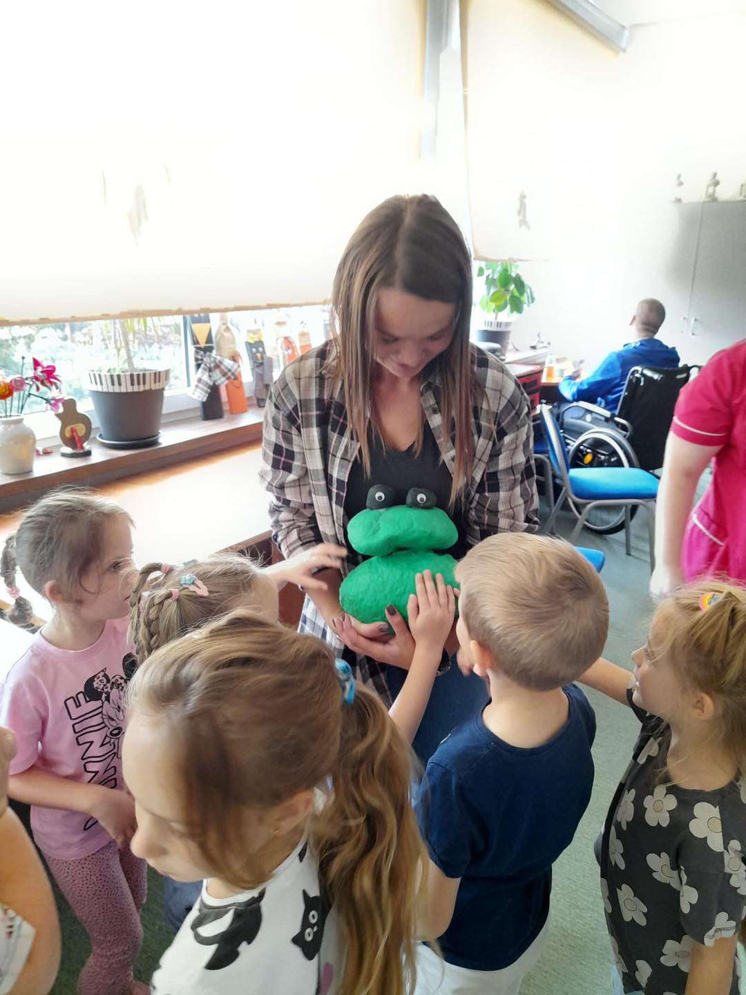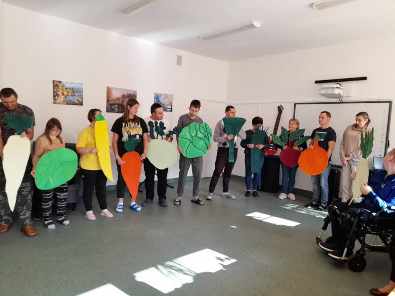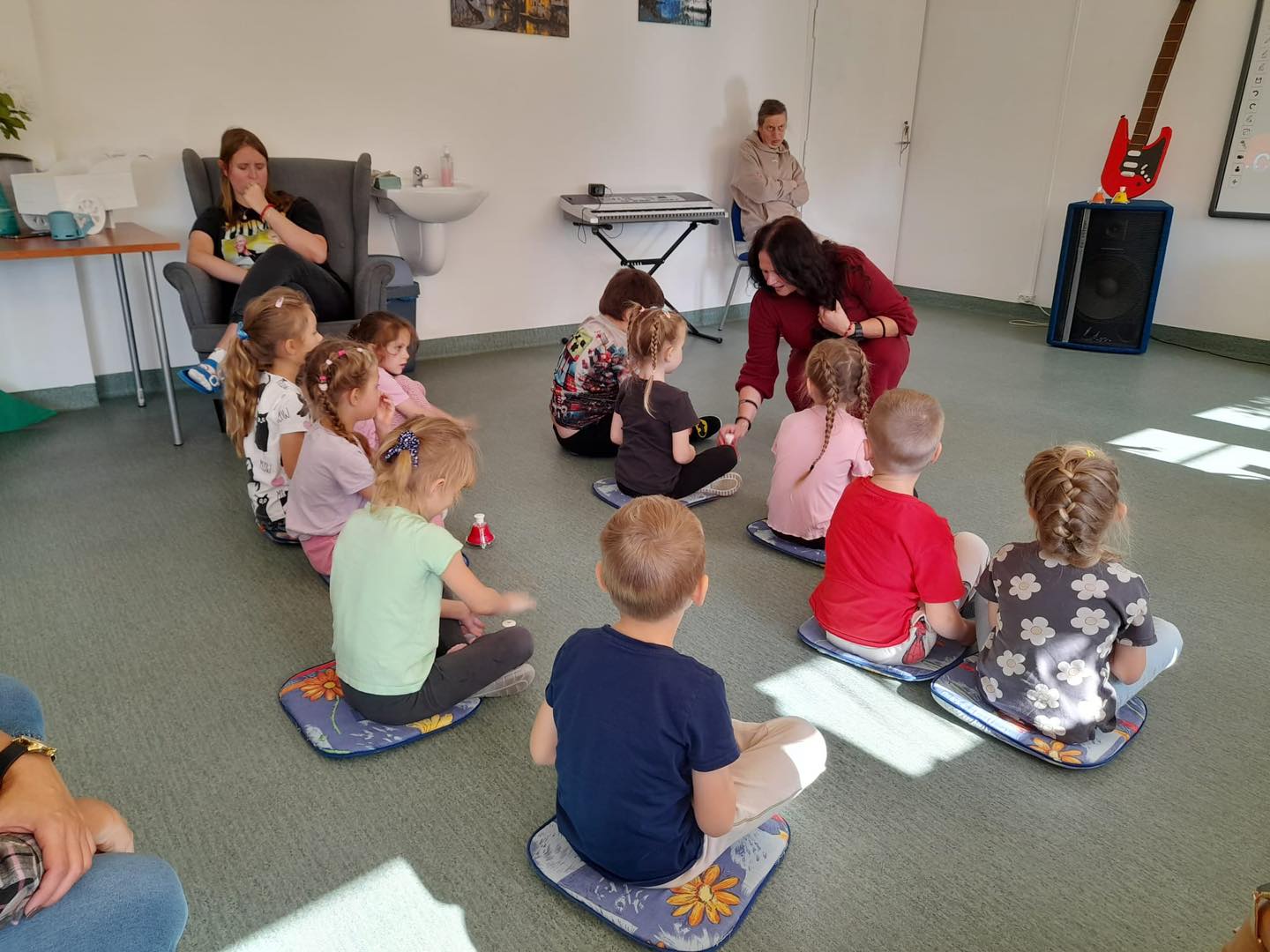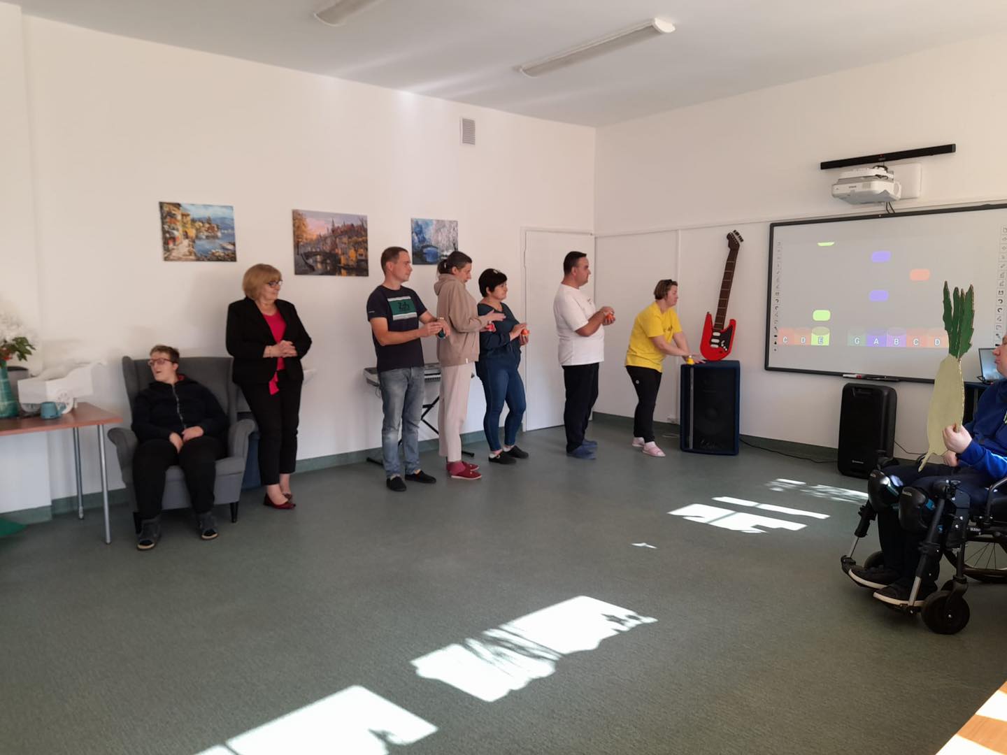 W ramach projektu „Szczęśliwi, bo różnorodni” mieliśmy zaszczyt odwiedzić po sąsiedzku Warsztaty Terapii Zajęciowej. Nasze przedszkolaki obejrzały mały spektakl pt.:”Na straganie” w wykonaniu podopiecznych, a następnie wysłuchały pięknej melodii zagranej na dzwonkach. Następnie dzieci miały możliwości uczestniczyć w kilku aktywnościach. Po zabawie mogliśmy obejrzeć różne gabinety m.in plastyczny, komputerowy, artystyczny, sportowy oraz ekologiczny. Bardzo dziękujemy za zaproszenie i wspólną zabawę. Była to dla dzieci nauka akceptacji, zrozumienia oraz szacunku dla osób niepełnosprawnych. Mamy nadzieje, że to początek bardzo udanej współpracy.