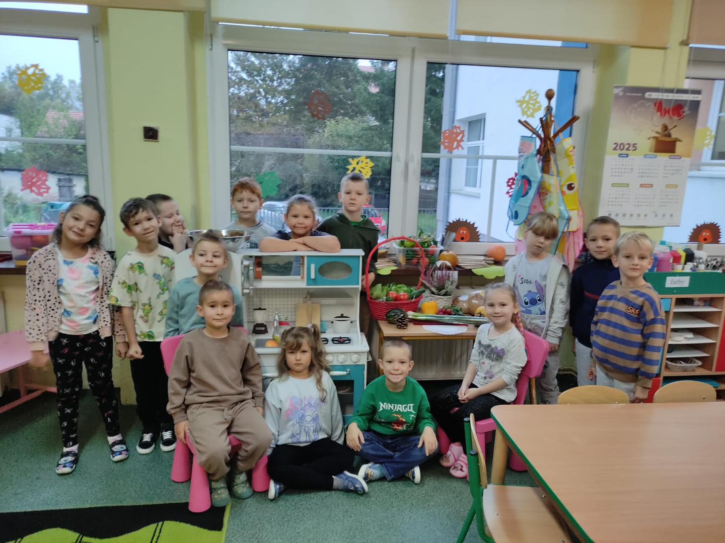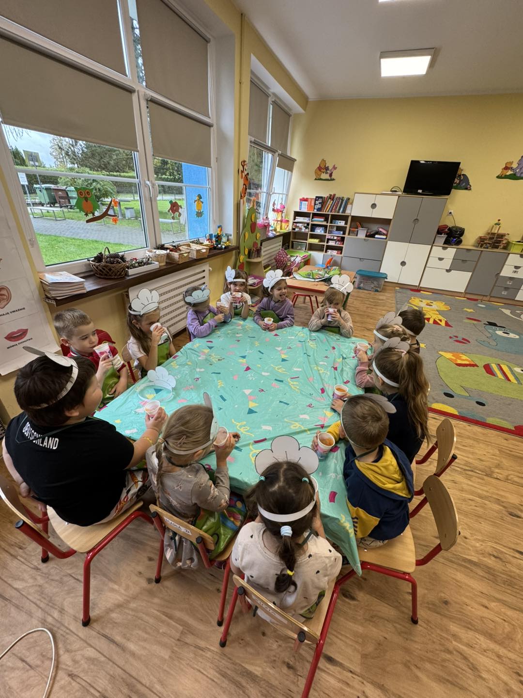 Dzieci 6- letnie wzięły aktywny udział w warsztatach kulinarnych. Samodzielnie komponowały kanapki z warzyw według własnego uznania. Były kolorowe i pyszne! Natomiast 5-latki przygotowały pyszny, zdrowy sok jabłkowo-marchewkowy.