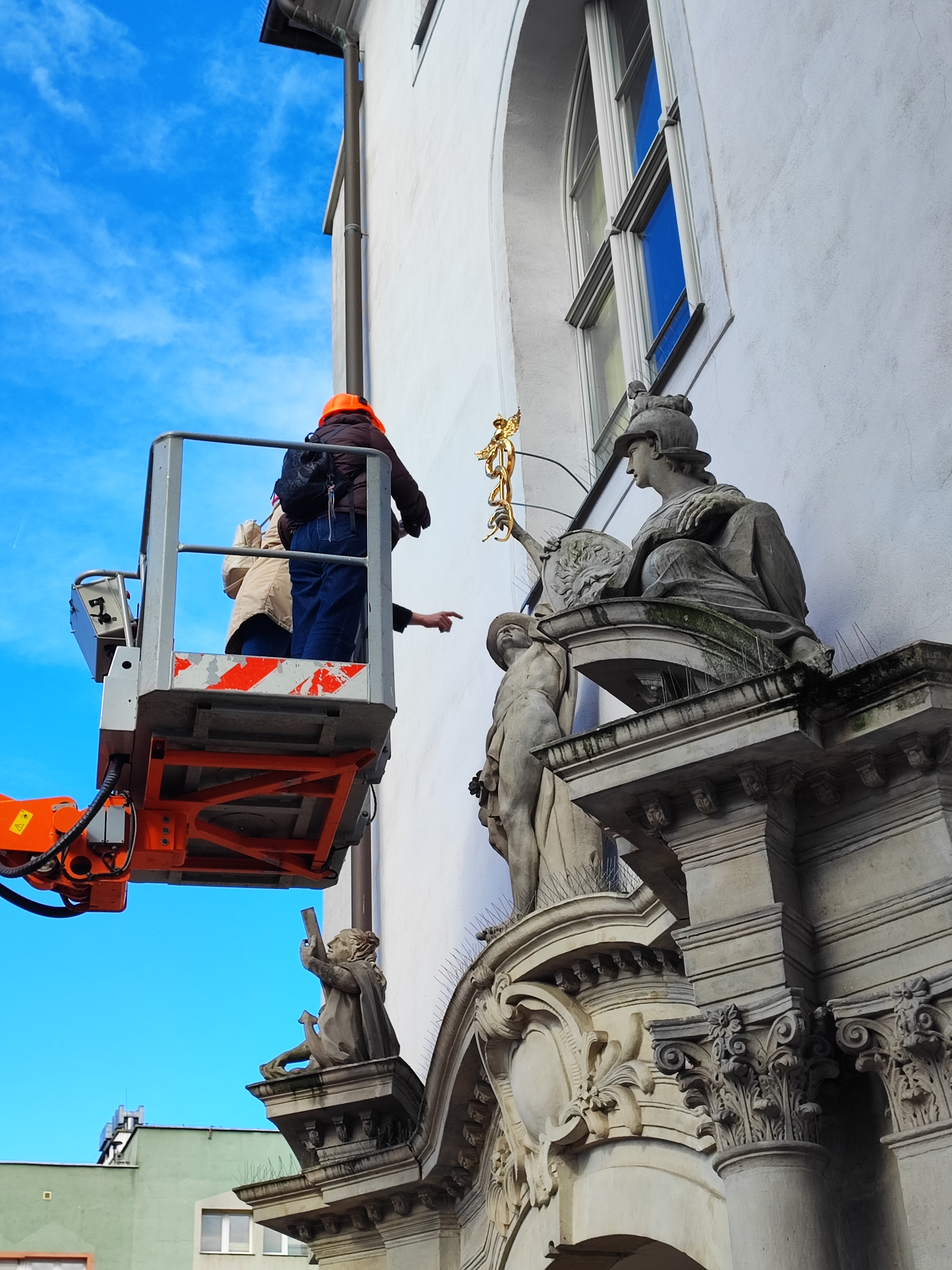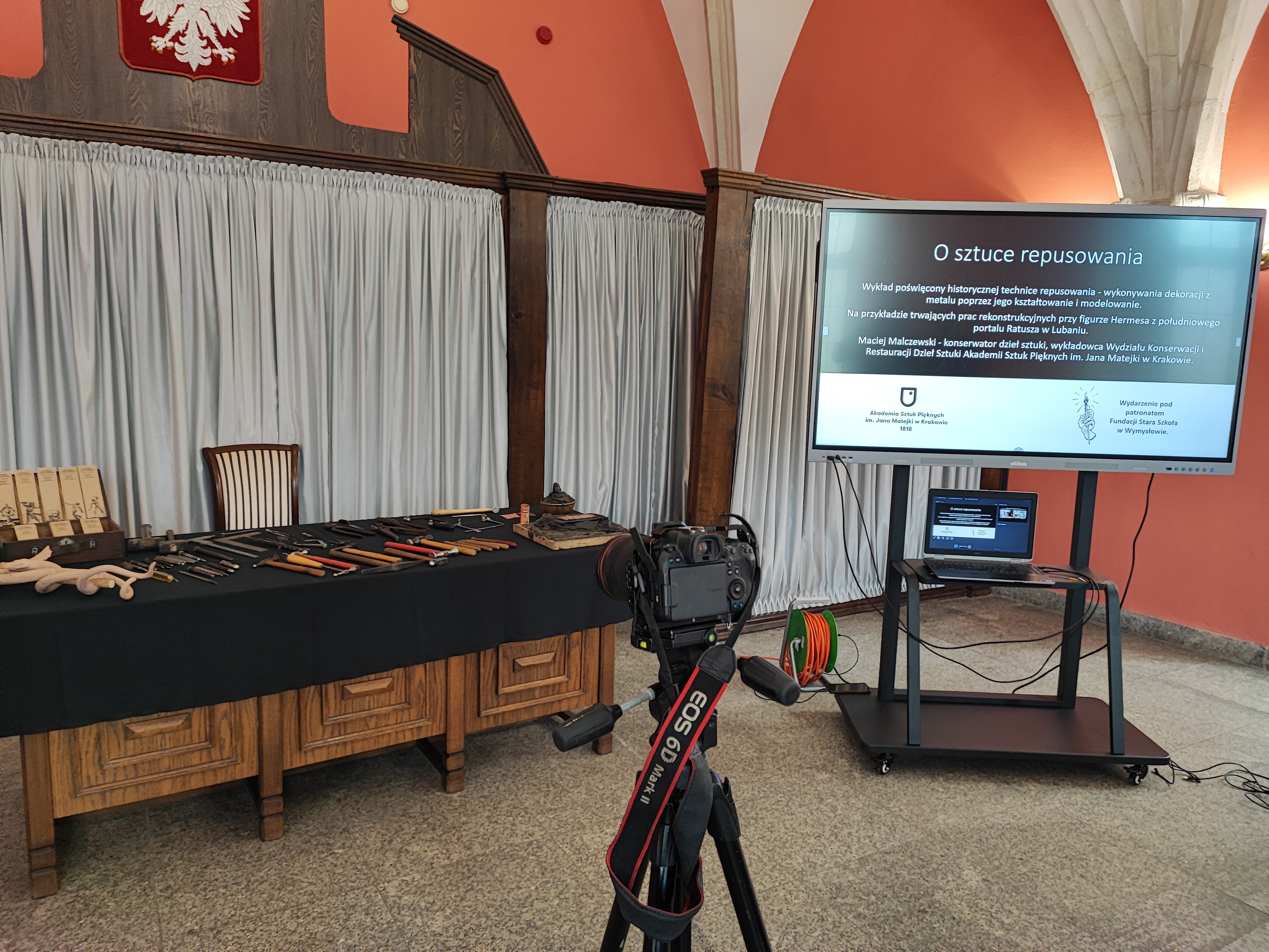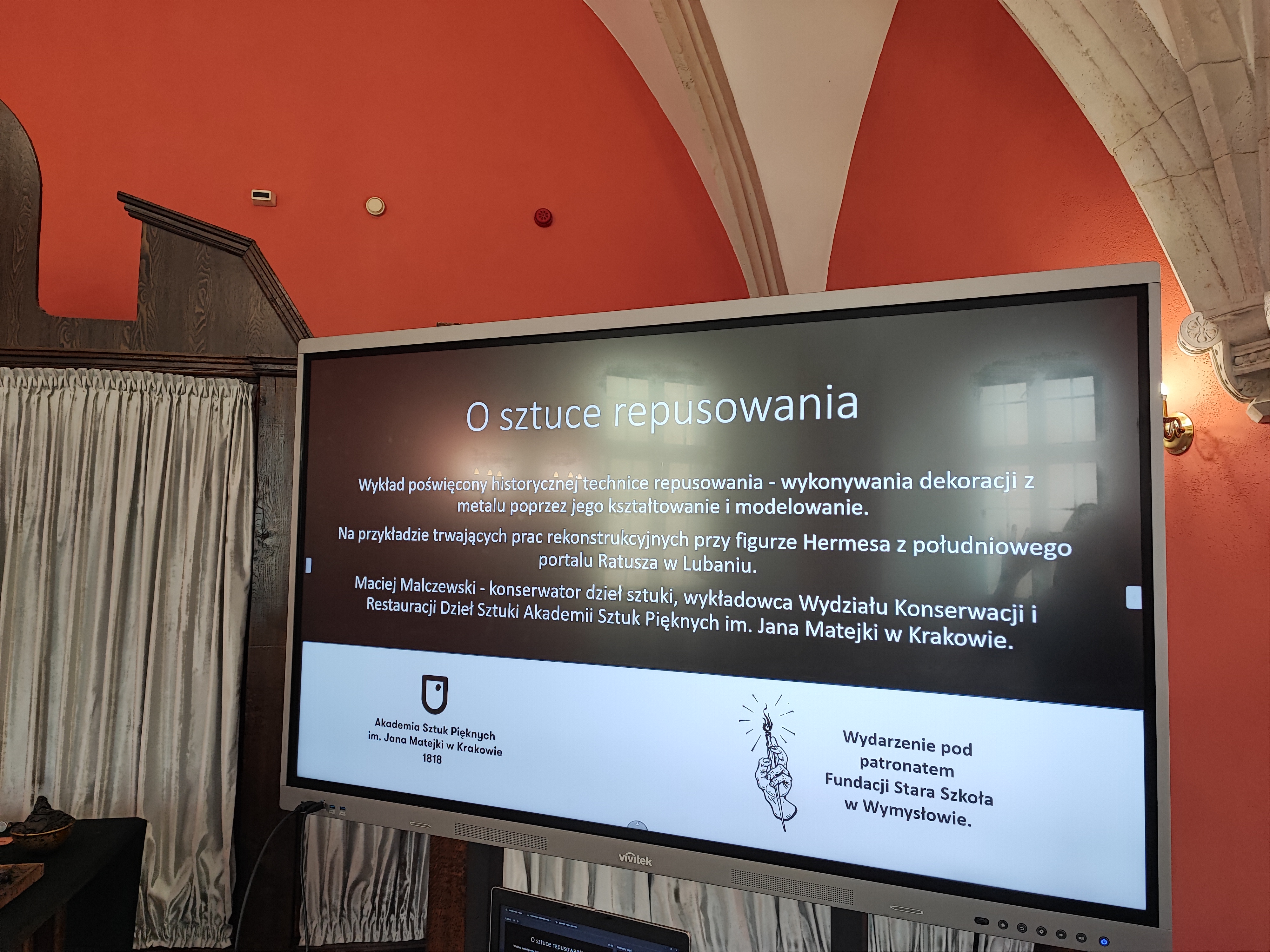 Naszym gościem był Maciej Malczewski, konserwator dzieł sztuki i wykładowca Wydział Konserwacji i Restauracji Dzieł Sztuki ASP w Krakowie , który - na przykładzie trwających prac rekonstrukcyjnych przy figurze Hermesa z południowego portalu Ratusza w Lubaniu (odtworzenie zabytkowego kaduceusza) - opowiedział o tajnikach tej historycznej, rzadko praktykowanej już techniki.