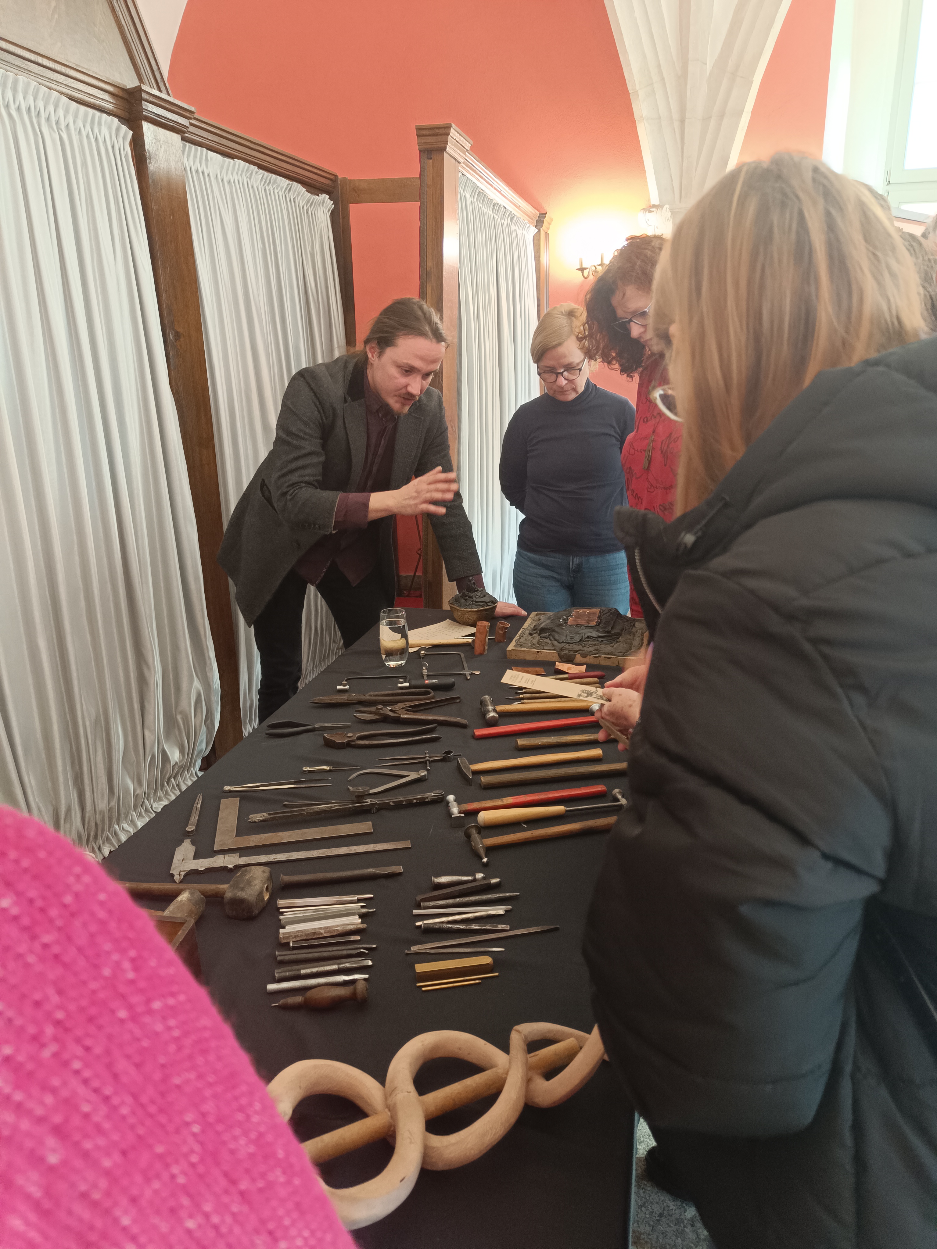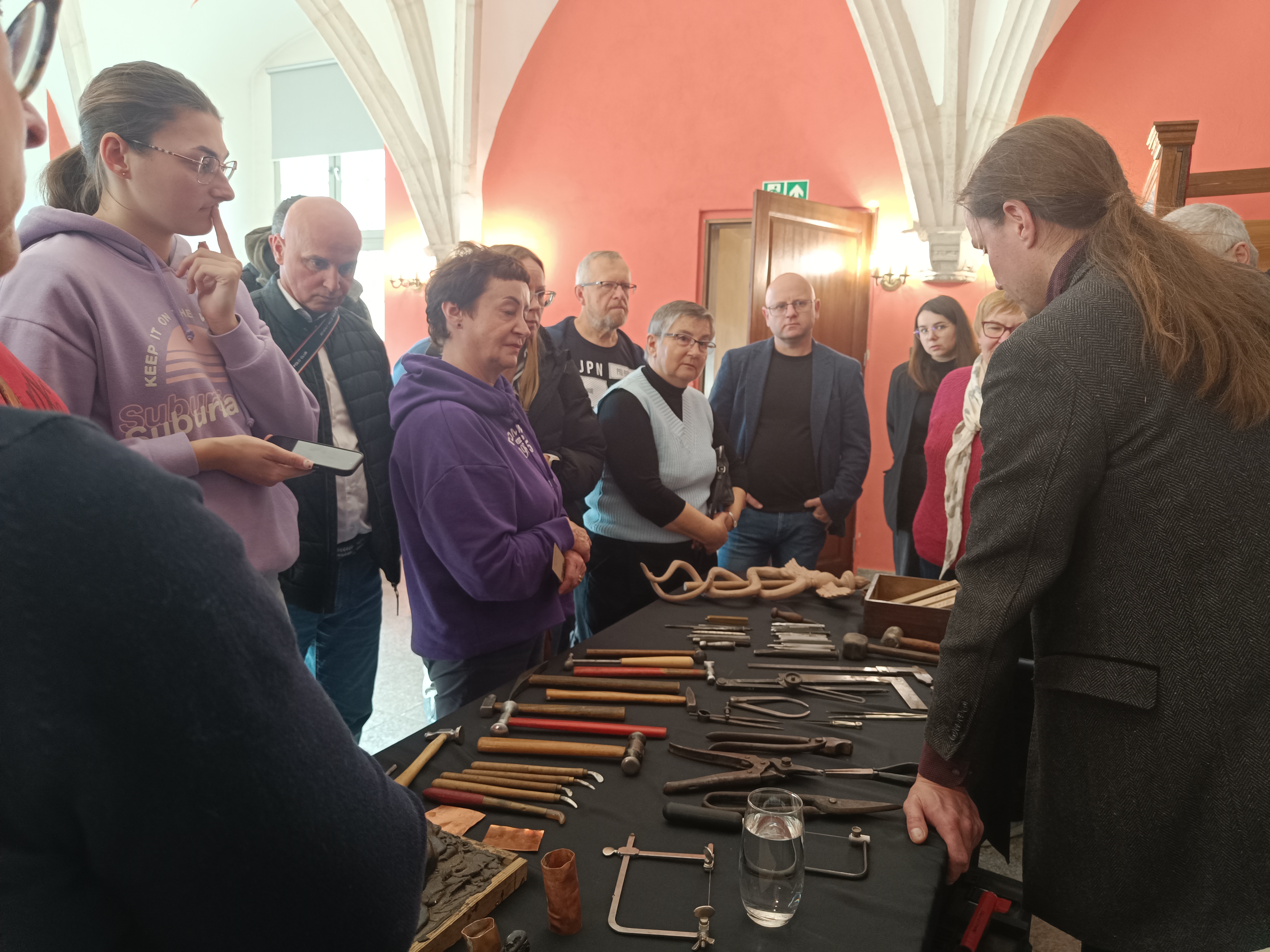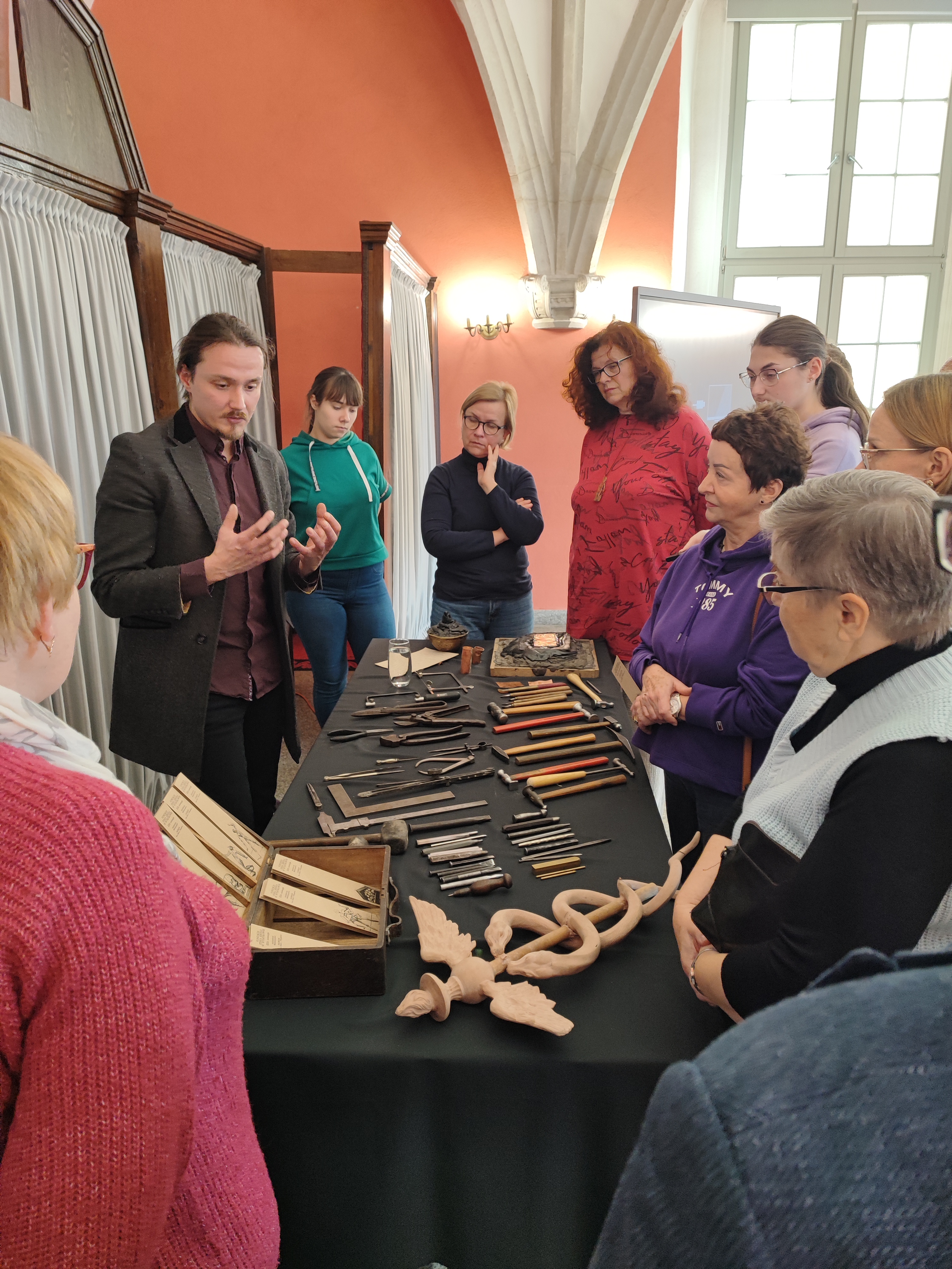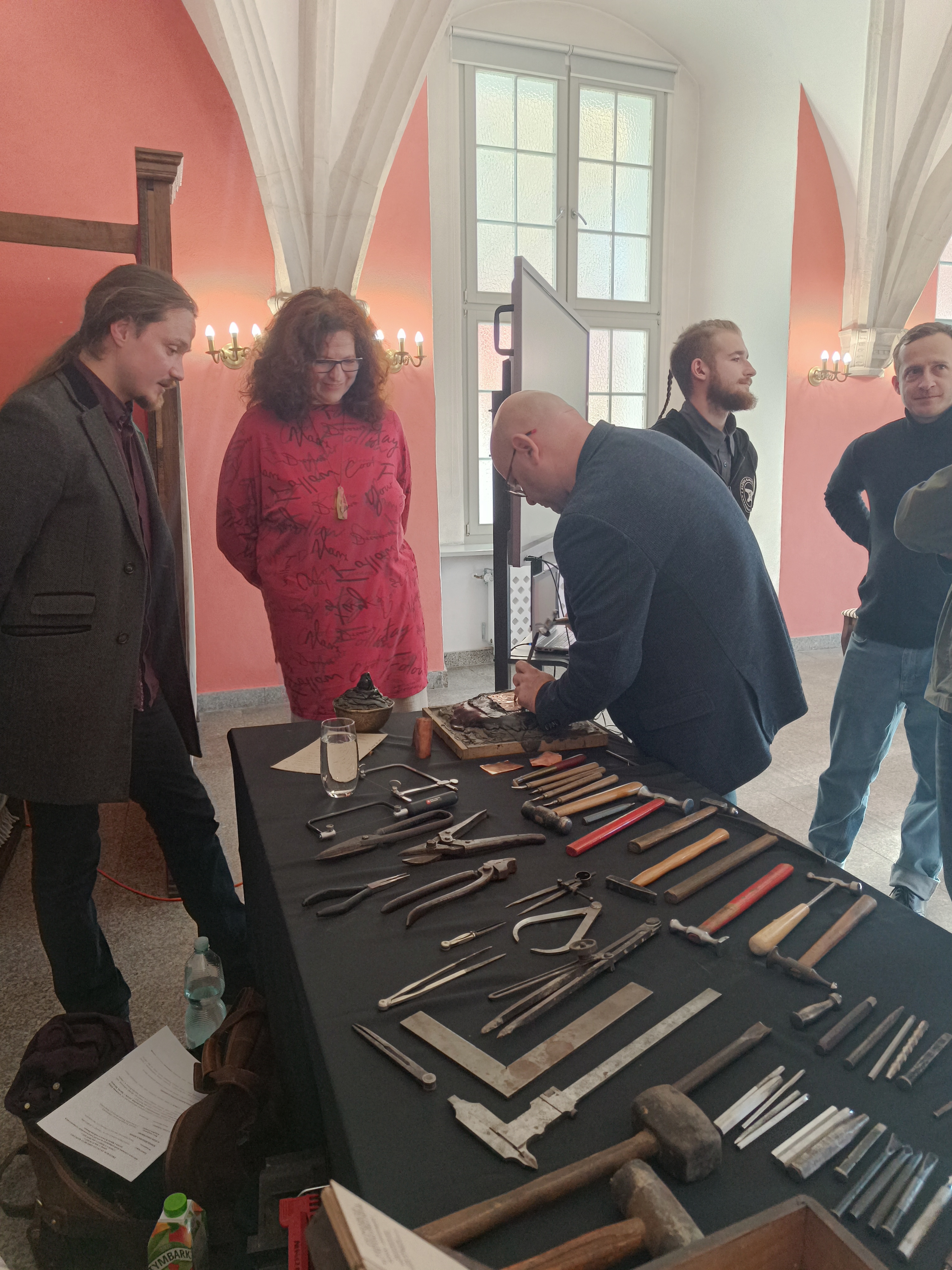 Wykład przybliżył zarówno kontekst samego zabytku, jak i technologii związanej z rekonstrukcją detali metalowych, zaś w ramach warsztatu goście poznali narzędzia oraz materiały używane w tej tradycyjnej, unikatowej technice.