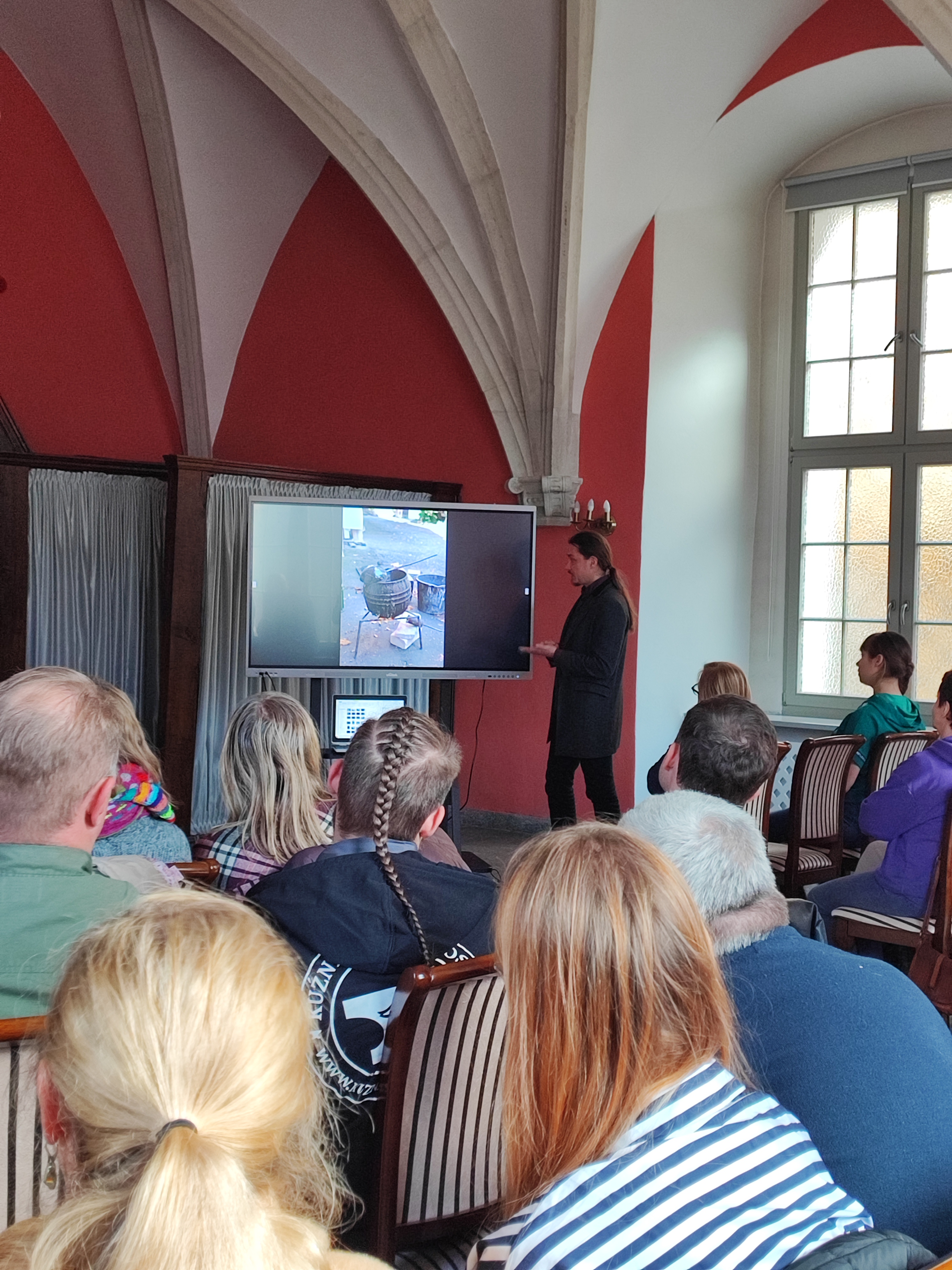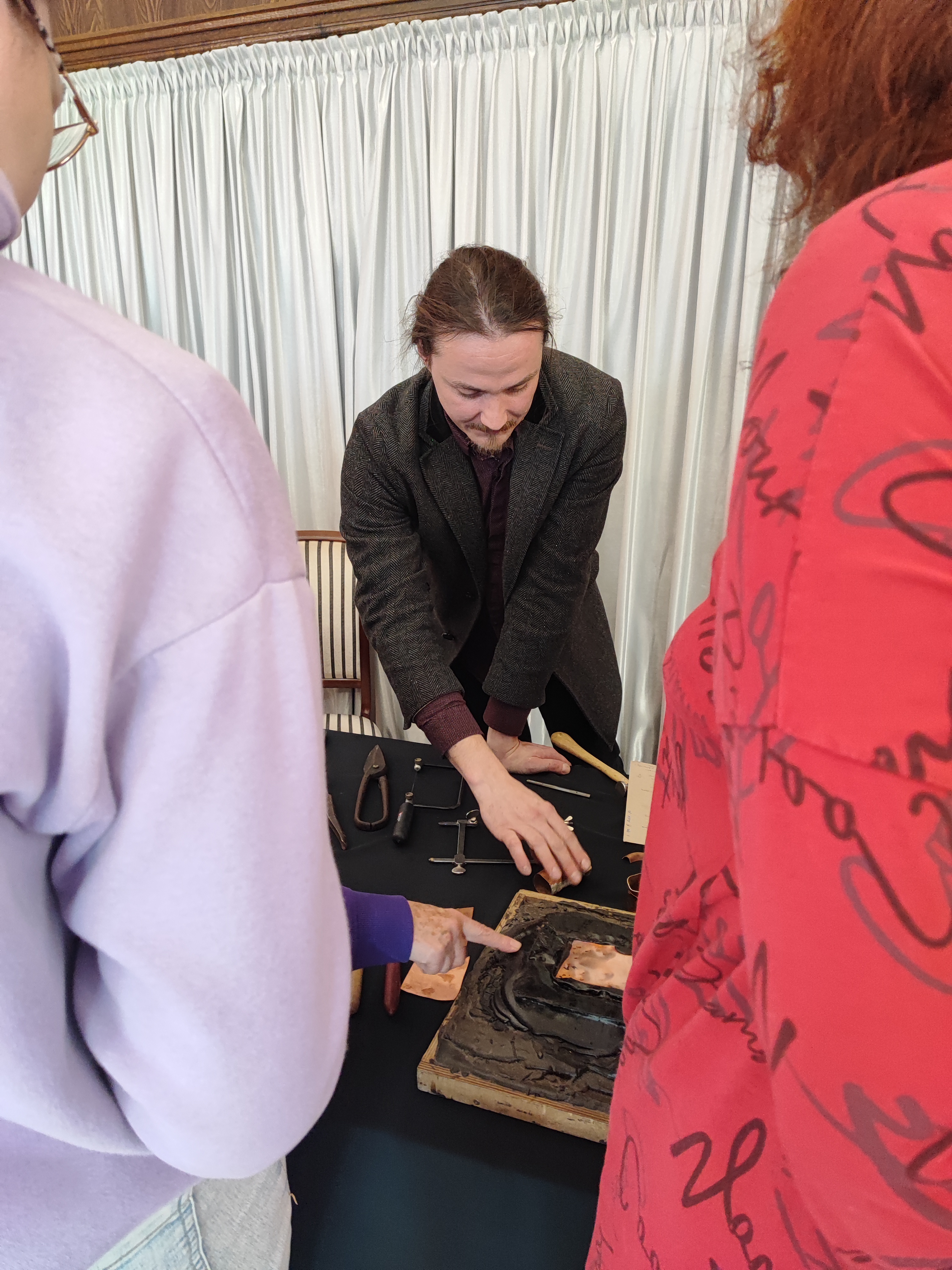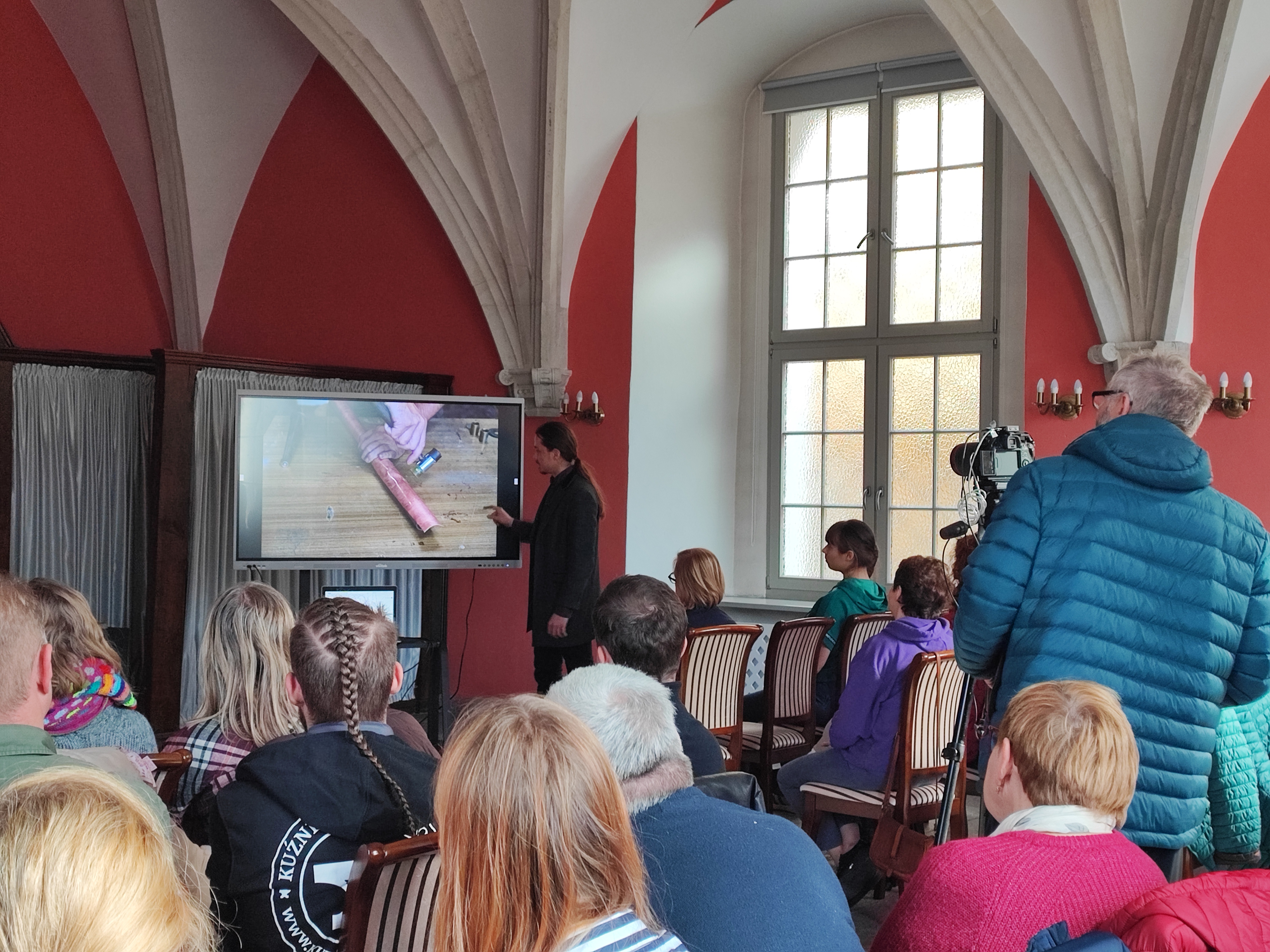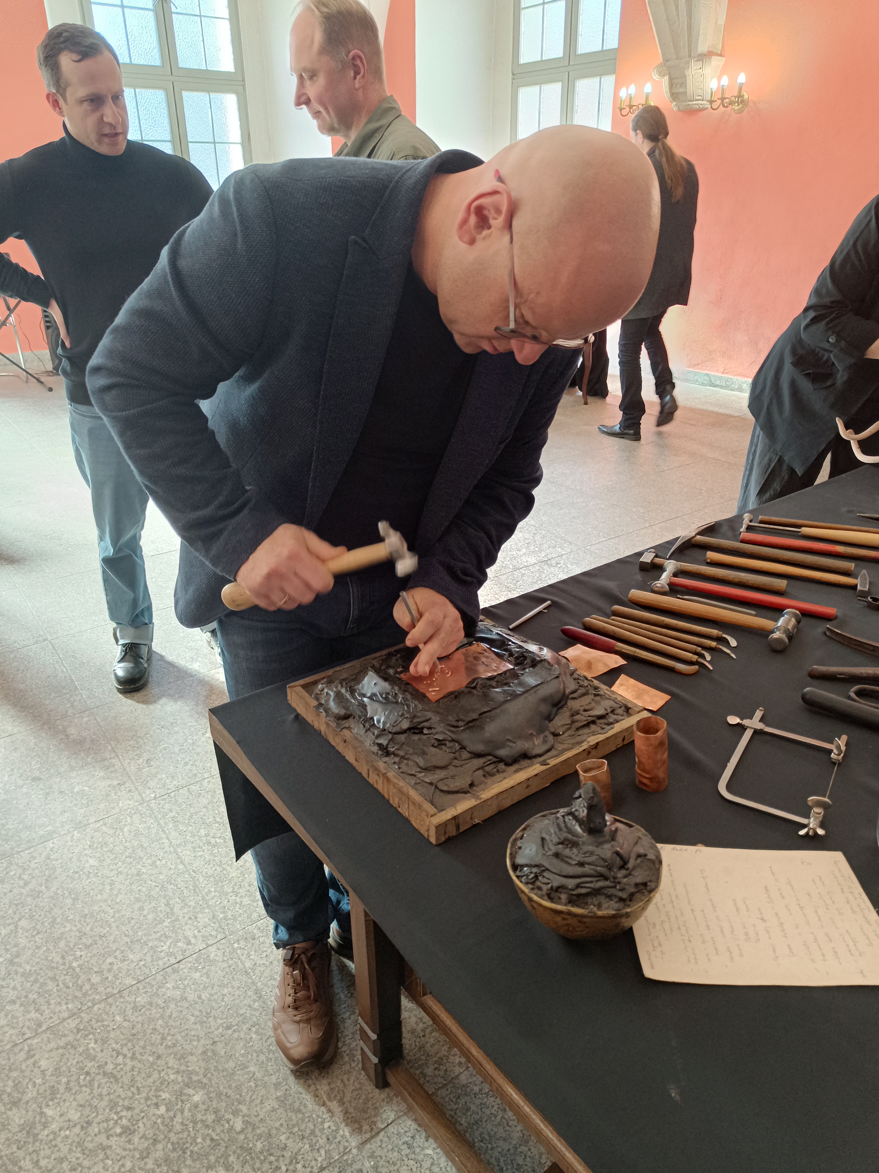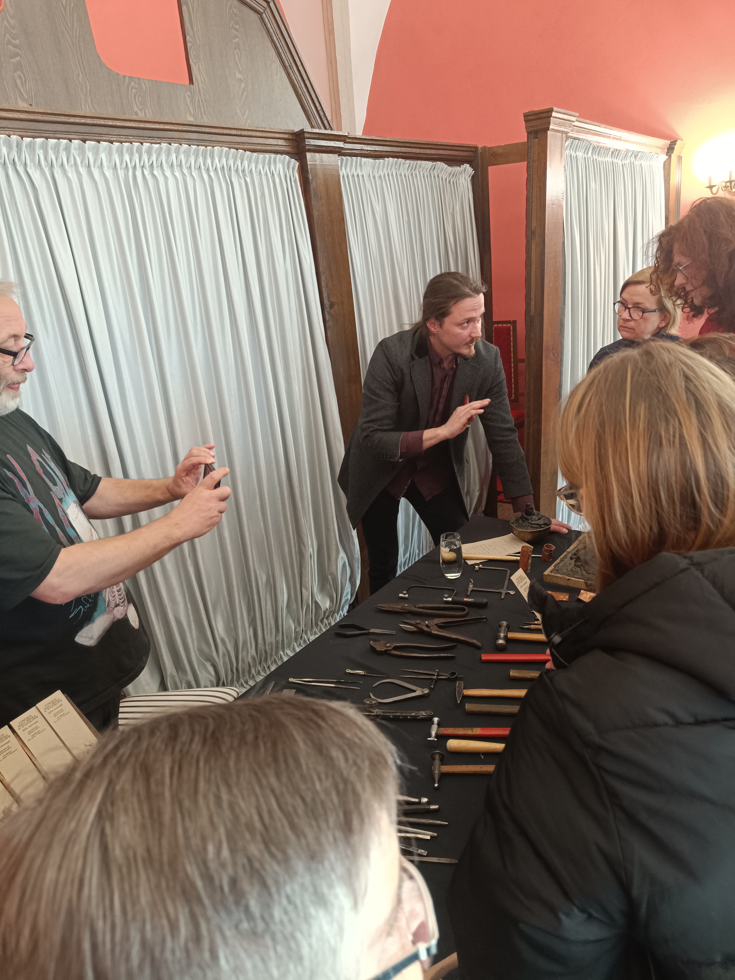Wykład przybliżył zarówno kontekst samego zabytku, jak i technologii związanej z rekonstrukcją detali metalowych, zaś w ramach warsztatu goście poznali narzędzia oraz materiały używane w tej tradycyjnej, unikatowej technice.